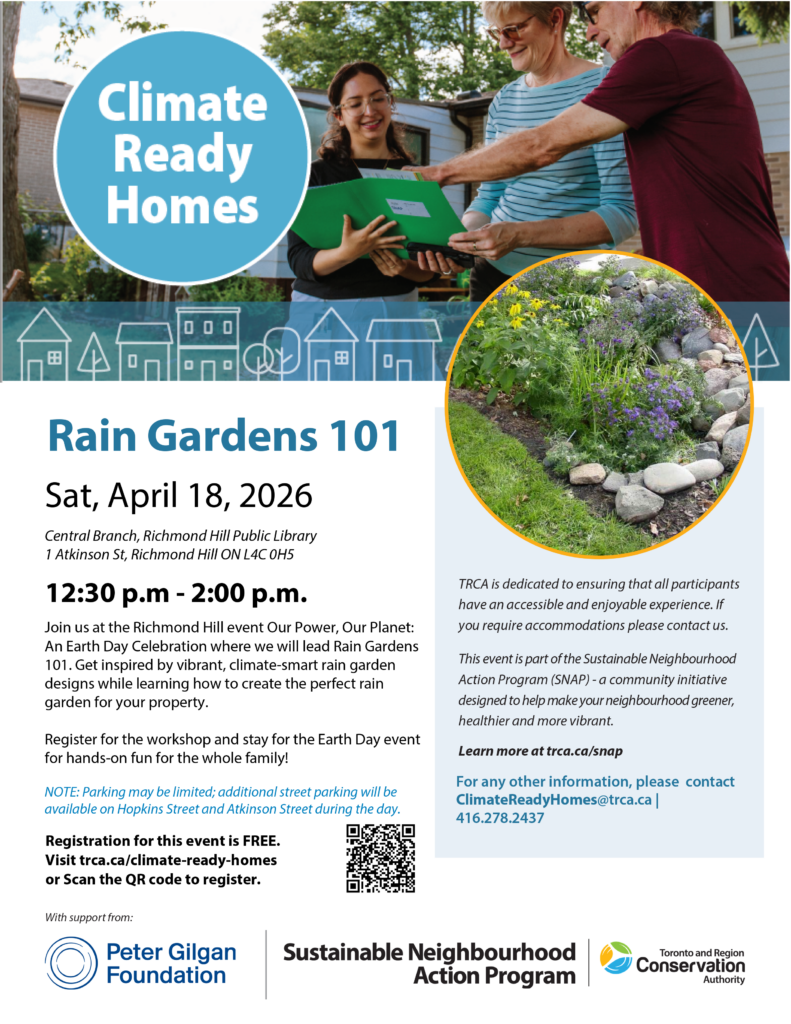 Join the Climate Ready Homes team at the upcoming Richmond Hill event Our Power, Our Planet: An Earth Day Celebration where we will lead Rain Gardens 101. Get inspired by vibrant, climate-smart rain garden designs while learning how to create the perfect rain garden for your property. Register for the workshop and stay for the Earth Day event for hands-on fun for the whole family!